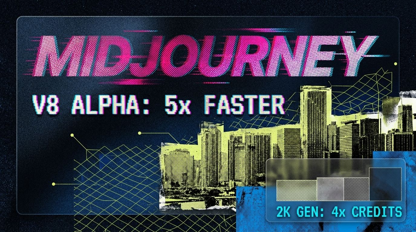 • Midjourney V8: 5x faster generation + native 2K resolution with text that doesn't look drunk